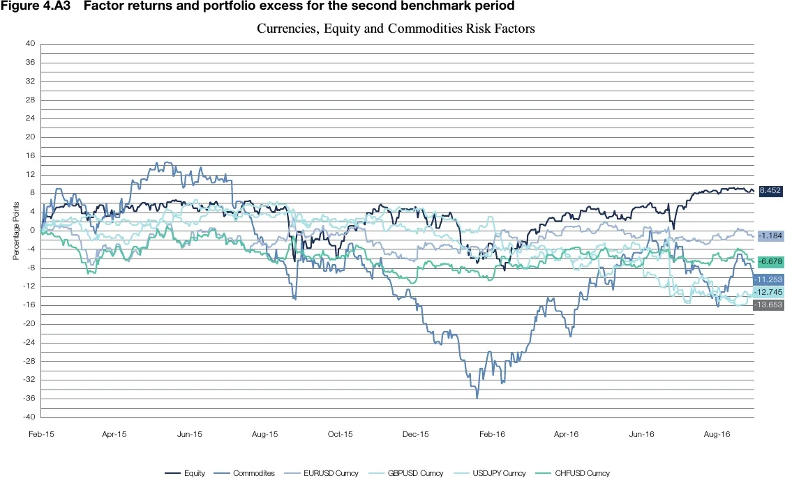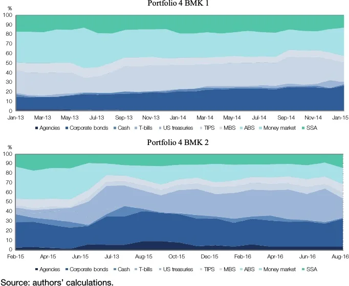 There is a very interesting finding in the second period. Contrary to theory, a change in benchmark changes the approach in the way the external managers generate their excess returns. Between 31 December 2012 and 31 January 2015, when faced with the first benchmark (50% money market, 16.7% six-month T-bills and 33.3% TIPS 1–10 years) external managers (portfolios 1 and 2) use a skill-driven approach. From 31 January 2015 to 31 August 2016, when faced with the second benchmark (80% money market and 20% six-month T-bills) external managers increase significantly their use of style-driven strategies.