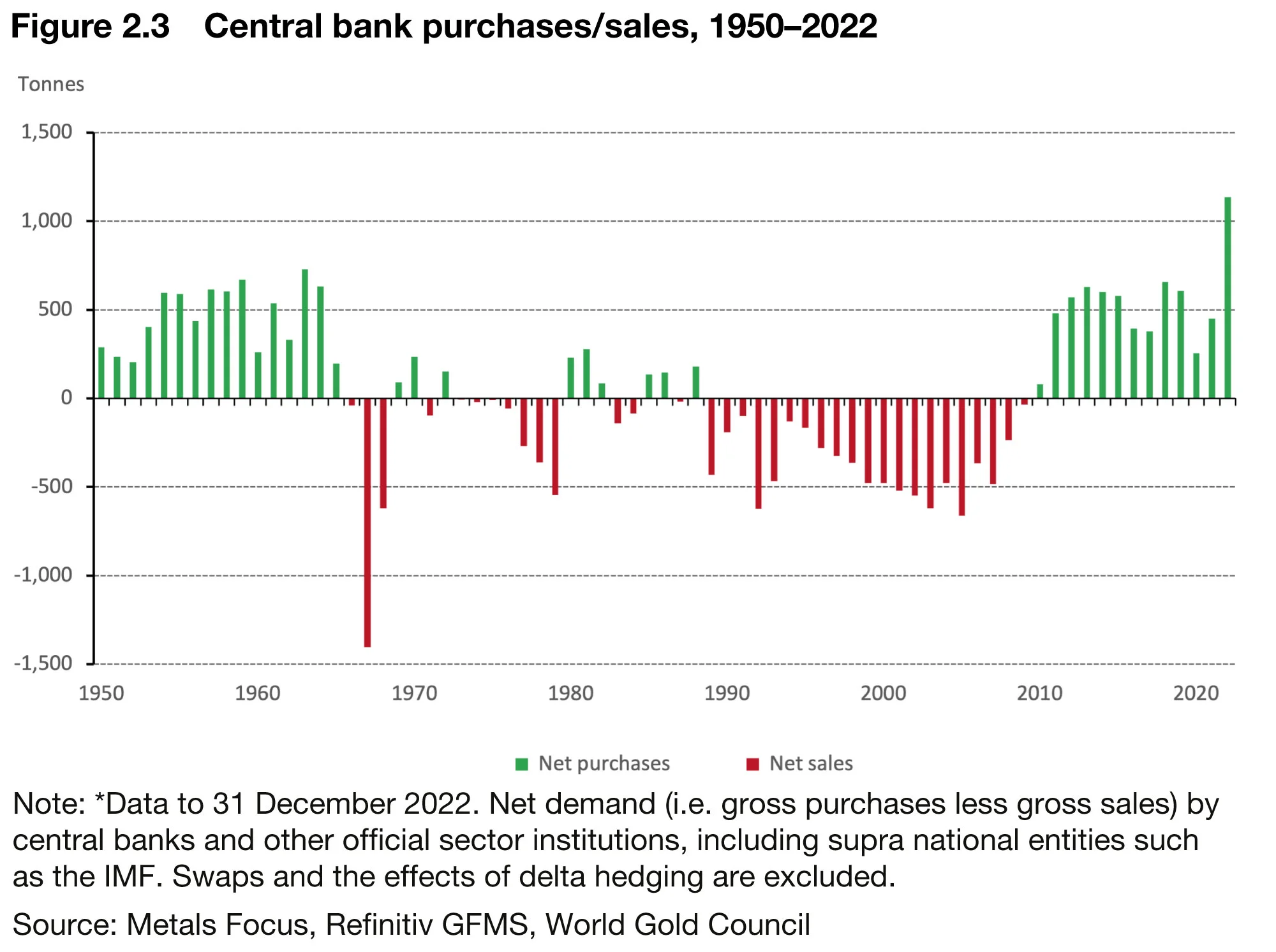 Ian Bremmer, president of the political risk consulting firm Eurasia Group, has said the war in Ukraine has abruptly ended the “peace dividend”. This ramp-up of national security within Europe will be permanent, Mr Bremmer said, along with deployments of military forces in the Baltic states. As the “peace dividend” created an environment less supportive of gold by reducing uncertainty, a shift could be a supportive development for gold. Already the swings in commodity prices and financial markets have been dramatic, and volatility looks set to be a feature of the outlook for the foreseeable future, much of it as a consequence of geopolitics. Charged with safeguarding a nation’s economic wellbeing, it is not surprising that the current global conditions have elicited greater central bank gold purchases.